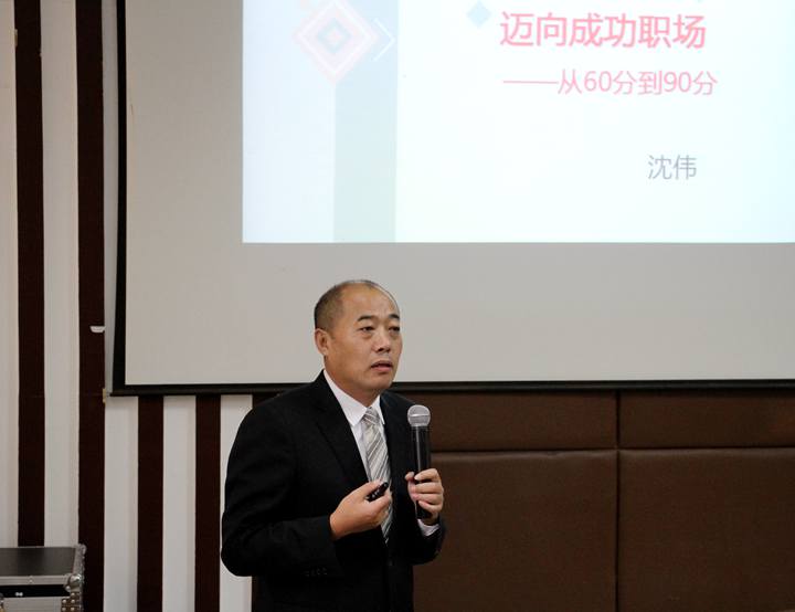 沈伟的专题讲座题为“迈向成功职场——从60分到90分”,从未来就业市场分析、职场用人之道、职场要求的60分到90分、从校园走向职场等方面入手,指导订单班学员如何高质量地完成从校园到职场的蜕变并成功融入团队,如何在实习过程中通过“从做中学”来掌握知识,从而实现提升素养、迈向职场,成为一名优秀的保险公司员工的目标。讲座中,沈伟还与订单班学生进行了深入交流,就顶岗实习等问题作了详细解答。整堂讲座生动活泼、互动积极、气氛热烈,教室里不时响起热烈的掌声。