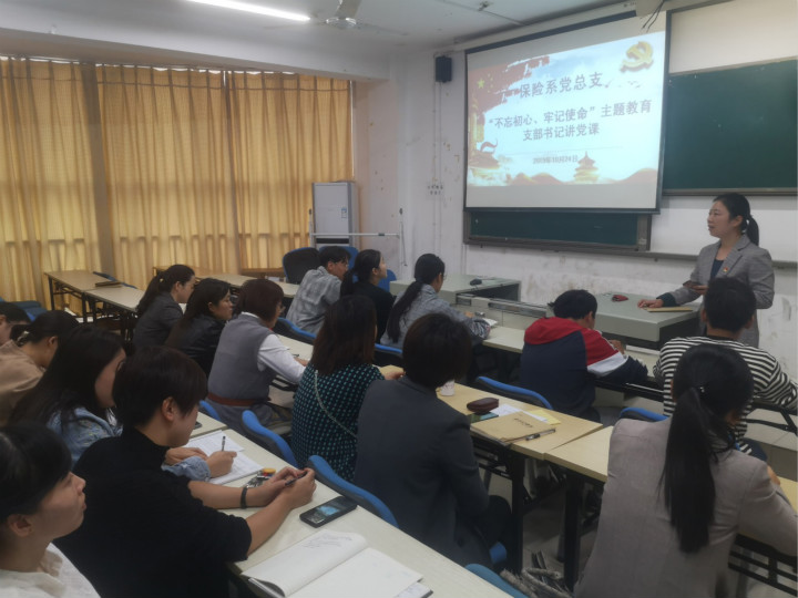 10月24日下午4:20,保险系党支部在1栋313教室开展“不忘初心、牢记使命”为主题开展集中学习和研讨,保险系教工党支部和学生党员参加了集中学习,活动由教工党支部书记侯丹主持。