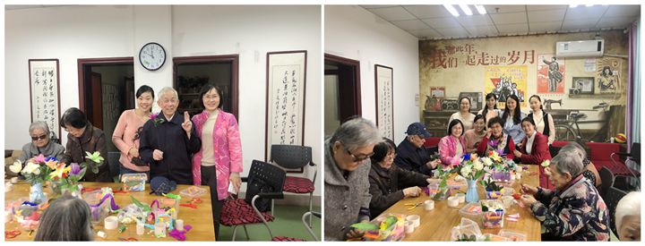 活动中,党员同志搀扶老人有序就坐,协助他们手工制作布艺花朵,递剪刀、整理绒布绒线、挑选花蕊,忙的不亦乐乎。在制作过程中,党员与老人们细细交谈,倾听老人心声,详细了解他们的生活、身体状况,并与他们分享自己工作生活中的趣事。老人们喜笑颜开,还开心地和大家玩起自拍。陈爷爷已90岁高龄,在接到志愿者送的保暖衣物,拉着志愿者的手久久不肯松开:“你们都是好样的,心地这么善良,一定可以活到200岁!”
