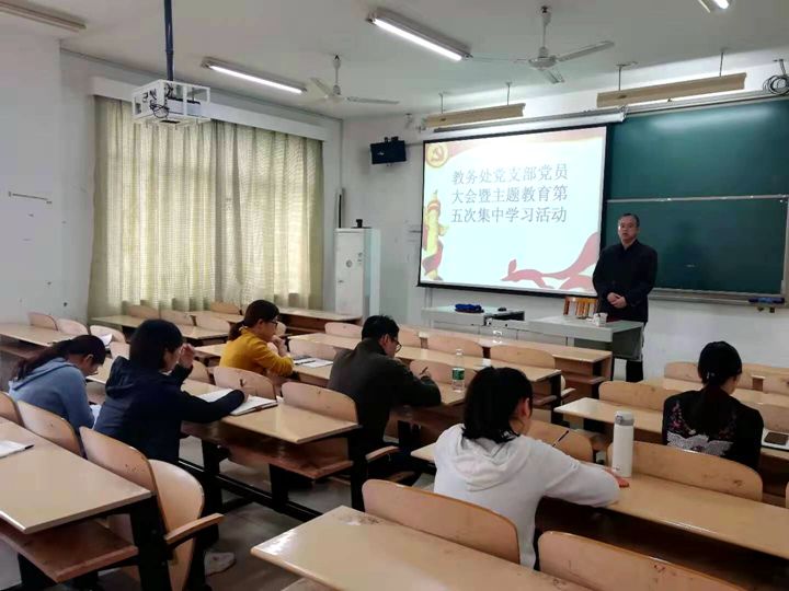 11月4日下午,教务处开展“不忘初心 牢记使命”主题教育第五次集中学习活动,全体党员参会,支部书记李长春同志主持。
