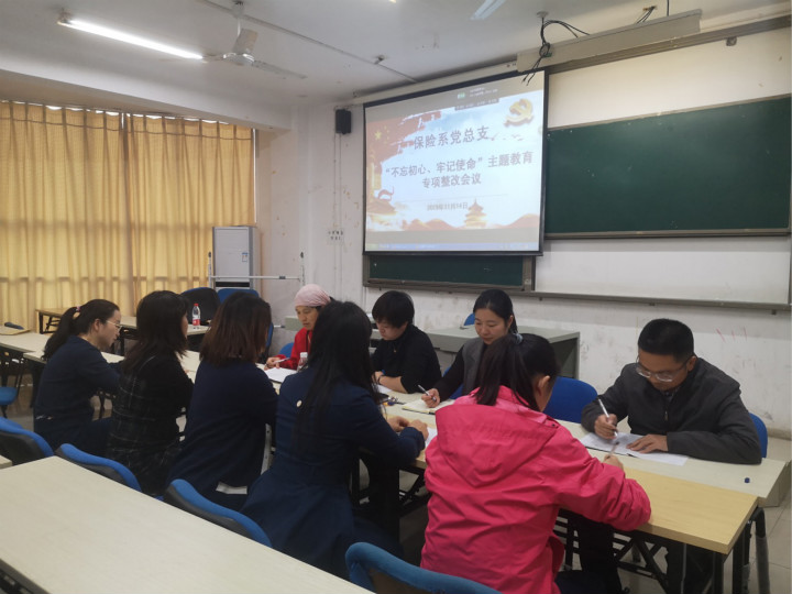 11月14日下午5:00,保险系党支部在1栋313教室开展“不忘初心、牢记使命”主题教育专项整改措施研究会议,保险系党组织支委委员及教研室主任参会,会议由总支书记周灿主持。