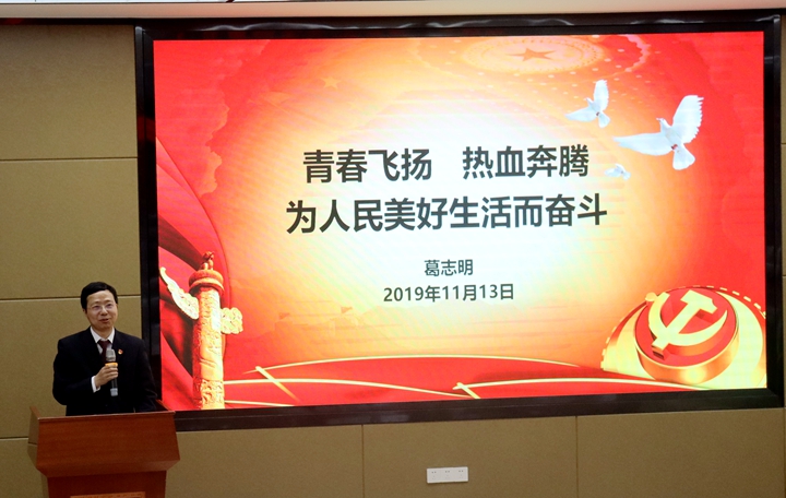 11月13日晚,葛志明书记讲授以“青春飞扬 热血奔腾 为人民美好生活而奋斗”为主题的党课。,在授课中葛书记风趣幽默,贴合实际,用一个个生动的例子来鼓励培训的学员,葛书记多次强调,青年一代才是国家的希望,才是国家的未来,他希望学员们能够坚持自己的梦想,不忘初心,牢记使命,争取早日加入党组织。(撰稿/刘璐 摄影/黄关超)