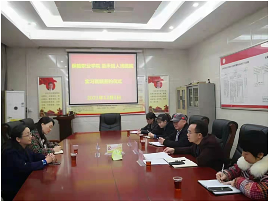 黄素、陈春玲在完成送岗工作的同时,还前往郴州市嘉禾县人民医院洽谈医校合作事宜,嘉禾县人民医院高度重视,举行了隆重的实习协议签约仪式,嘉禾县人民医院书记罗胜军、院长黄乃矿、副院长杨吉锋、办公室主任郭辉和相关科室主任出席仪式。罗胜军等领导对我院开设的护理、健康管理、智慧健康养老服务与管理专业高度认可,表示康养护理专业领域正是国家大力扶持和鼓励发展的方向,社会需求十分旺盛,并且与嘉禾县人民医院“十四五”发展规划有诸多契合之处。校医双方通过会谈加深了了解,双方希望通过此次建立实习基地为契机,加强我院和嘉禾县人民医院之间的合作与交流,拓宽康养护理学院学生实习渠道,实现学校与医院的共赢发展。