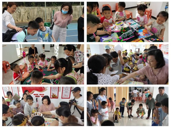 上午,在职工之家,莫彬萍老师和部分教职工家属带领小龄儿童做手工,画画,一幅幅漂亮的作品应时而生。在网球场,谭俊老师和周帆老师带领大龄儿童开展“袋鼠跳”、“运送乒乓球’、”丢沙包”等户外素质拓展活动。小朋友们随机分成两队比赛,获胜队队员积3张贴纸,小朋友按贴纸数换取奖品。比赛中,每队的小朋友们协作默契,同心协力完成一个又一个的项目挑战。