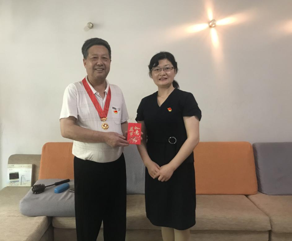 浓浓组织情,温暖党员心。在七一建党节来临之际,为进一步增强老党员的荣誉感、归属感和使命感,引导广大党员尊重老党员、关爱老党员,听党话、感党恩、跟党走。6月26日,党委组织部受学院党委委托,看望今年获得“光荣在党50年”纪念章的彭日光同志。