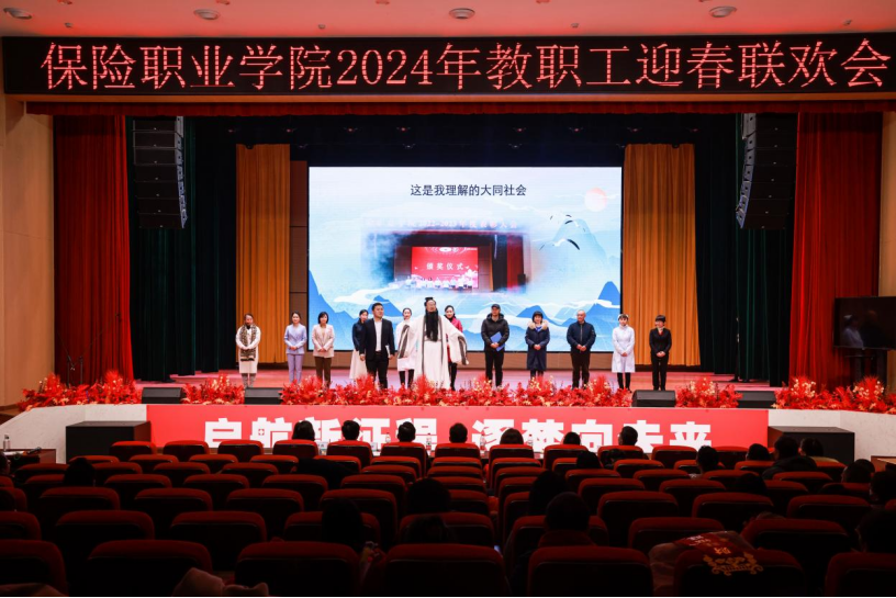 癸卯辞岁,甲辰肇启,1月16日下午,保险职业学院隆重举行主题为“启航新征程 逐梦向未来”2024年教职工迎春联欢会。中国人寿财险电销中心领导受邀出席。学院全体院领导,与来自19个工会小组的近三百名教职工及家属欢聚一堂,传递祝福,共贺龙年新春。晚会由学院工会主办,各工会小组协办。