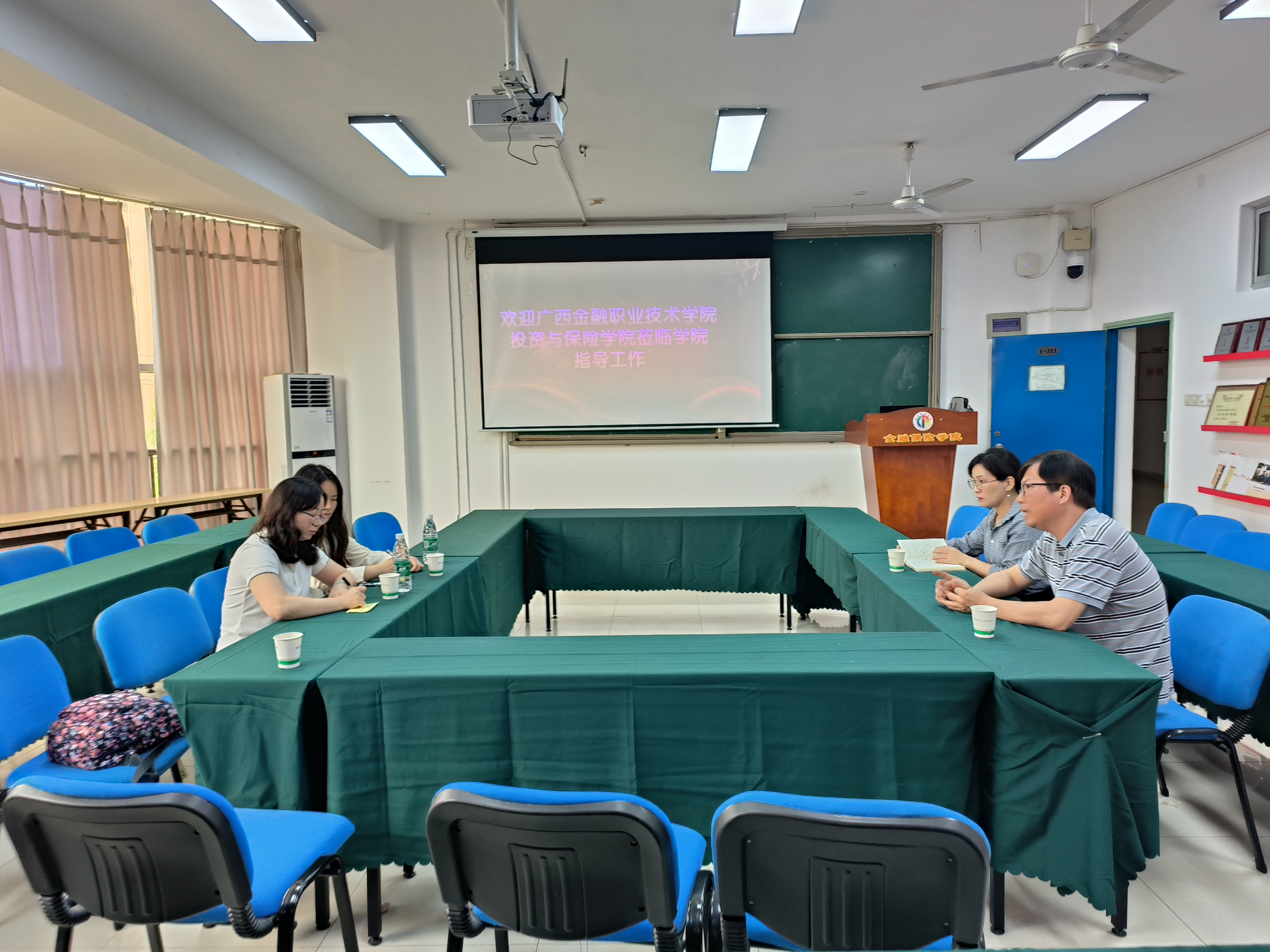2025年4月22日上午,广西金融职业技术学院投资与保险系一行3人到访金融保险学院1-313会议室开展交流活动。金融保险学院院长常伟热情接待。