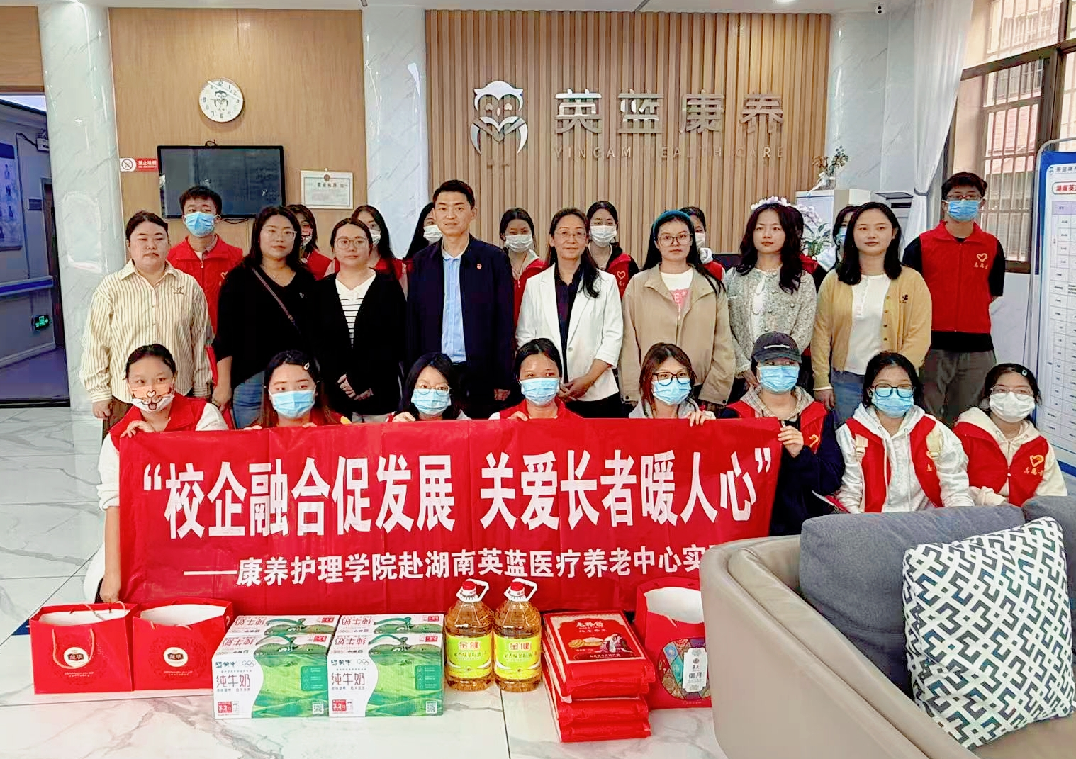 9月25日上午,康养护理学院黄素院长、董海波副院长率实训干事、学工线教师及18名志愿者,赴湖南英蓝医疗养老中心开展主题实践活动。