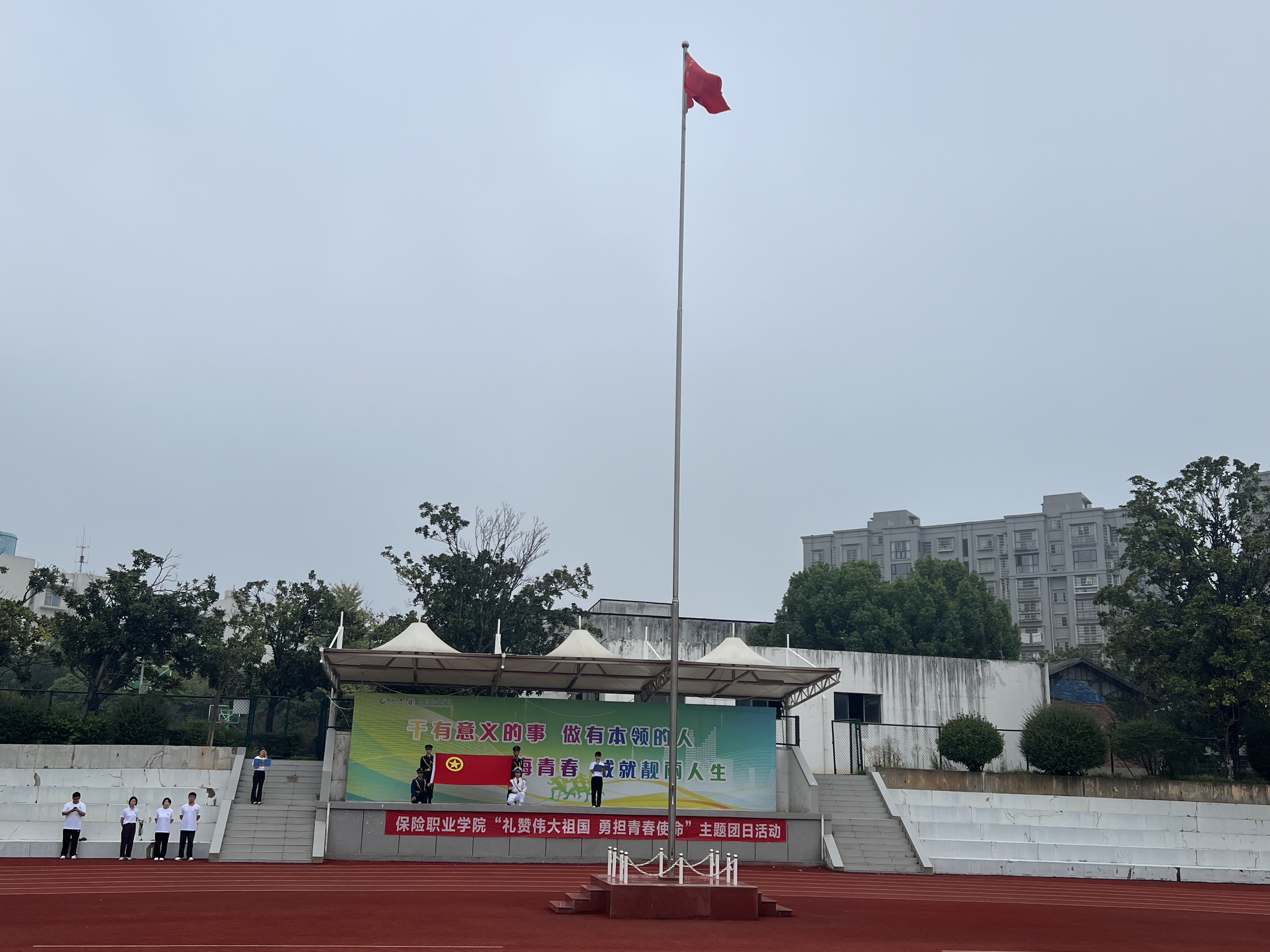 今年正值抗战胜利八十周年和新中国成立七十六周年,为弘扬抗战精神,传递爱国情怀,9月29日我院隆重举行了“礼赞伟大祖国 勇担青春使命”主题团日活动暨升旗仪式。学院领导、教师代表、学工线全体老师及2024级全体同学共同参与了这一庄严仪式。