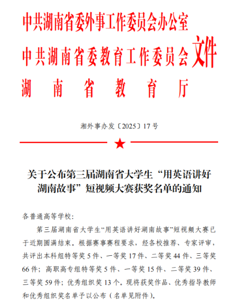 此次参赛是保险职业学院“以赛促教”的生动实践,师生团队在创作过程中既提升了短视频制作与英语文化传播能力,更以作品传递了青春正能量。未来,学校将继续鼓励师生挖掘湖南故事的精神内核,用多元形式向世界展现湖南青年的担当与风采。(撰稿/曾建兰)
