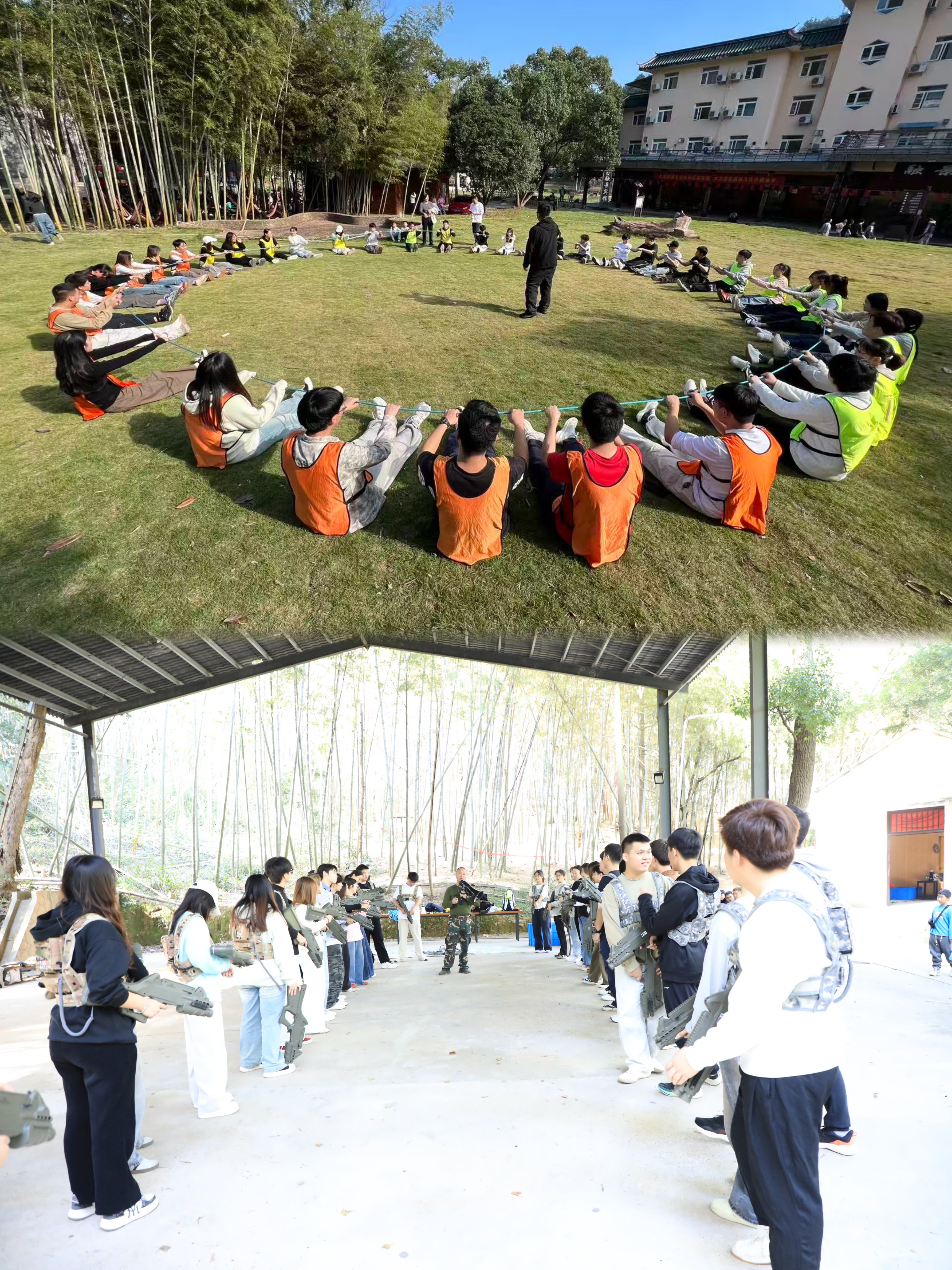 活动在轻松愉快的破冰游戏中开始,分组游戏“听数抱团”迅速拉近了彼此距离,成功让现场气氛活跃起来。“群龙取水”项目将团队协作推向高潮,各组成员在身体不接触地面的规则下,合力取回远处的矿泉水。大家相互支撑、彼此信任,每一次成功都引来全队的欢呼,现场洋溢着团结与拼搏的氛围。在真人CS对抗模拟战场中,各队制定战术、分工协作,在攻防转换中锻炼了策略思维与团队执行力,也在“战斗”中结下深厚的“战友情”。随后的“动力圈”项目更是将一天的素拓推向高潮,全体成员手握同一根绳圈,齐声口号、同心摆动,形成一股强大的集体力量。绳子紧绷如磐石,象征着团队坚不可摧的凝聚力,也让每一位参与者真切体会到“我们是一个整体”的深刻含义。