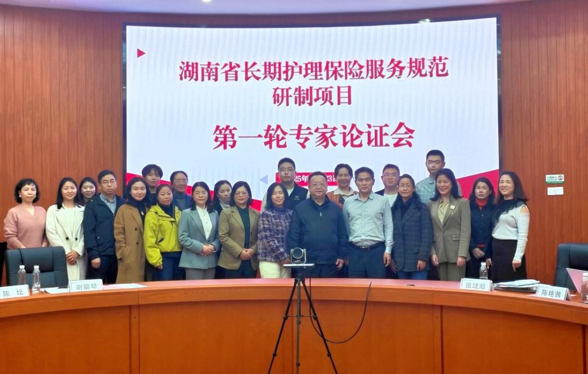 2025年11月23日,湖南省长期护理保险服务规范研制项目第一轮专家论证会在保险职业学院召开,邀请了医疗、养老、保险等领域多名行业专家开展项目论证。省医保局医药服务处副处长王映辉、省医保研究会长护险专委会主任委员冯辉、保险职业学院党委书记兼院长蒲彦君出席会议,项目组全体成员参会。