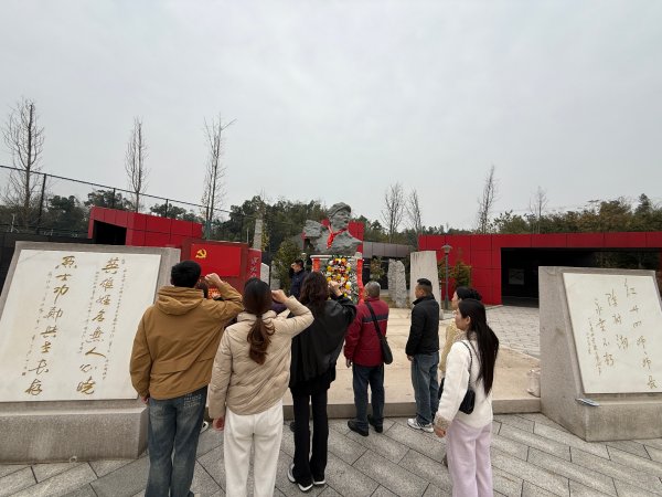 在纪念广场,全体党员怀着崇敬的心情聆听讲解。作为红五军团第34师师长陈树湘在湘江战役中为掩护主力突围,率部浴血奋战,被俘后毅然断肠明志,壮烈牺牲,年仅29岁。他用短暂而光辉的一生,诠释了对党和人民的无限忠诚,践行了“为苏维埃流尽最后一滴血”的铮铮誓言。一幅幅照片、一段段文字生动再现了那段波澜壮阔的历史,党员们深受震撼,真切感受到了先烈坚定的理想信念和大无畏的牺牲精神。