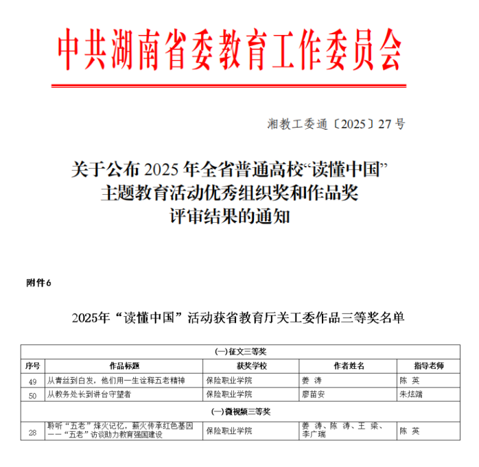 此次获奖,不仅是对参赛师生努力的肯定,更是我院全面落实立德树人根本任务、创新思想政治教育形式的成果体现。学院将继续以此为契机,鼓励更多青年学子在实践中锤炼本领、感悟初心、传承精神,努力成长为担当民族复兴大任的时代新人。(撰稿/冯泽宇)