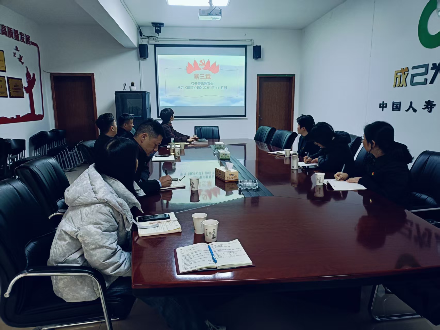 12月26日,现代教育学院党支部与中国人寿财产保险股份有限公司望城区支公司党支部联合开展党建交流活动,学院党员走进企业,列席并参与公司年终支部学习会议。
