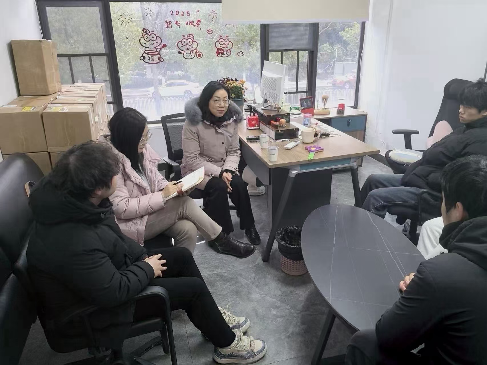 1月21日,金融保险学院谢汀芬、田建湘两位老师前往中华联合保险长沙分公司,开展年前实习巡查与慰问。