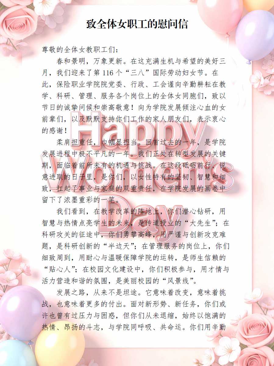 致全体女职工的慰问信