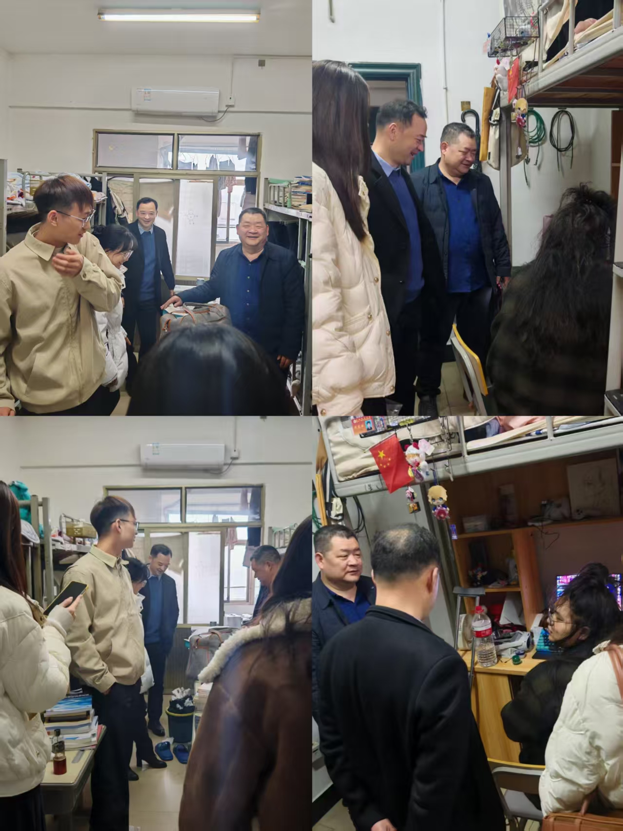 傅航院长详细询问大家新学期的学习状态、课程适应情况及学业规划,耐心解答学生们对AI运用的困惑、引导同学们明确目标、调整状态,扎实提升专业能力与快速适应新时代的要求。与此同时,老师们对宿舍用电安全、卫生环境等进行了检查,提醒同学们增强安全意识,遵守宿舍管理规定,提醒同学们提高安全防范意识,时刻绷紧安全弦,严禁使用违规电器,共同营造积极向上、整洁和谐的宿舍文化氛围,并叮嘱大家积极参加晨炼活动,锻炼好身体。