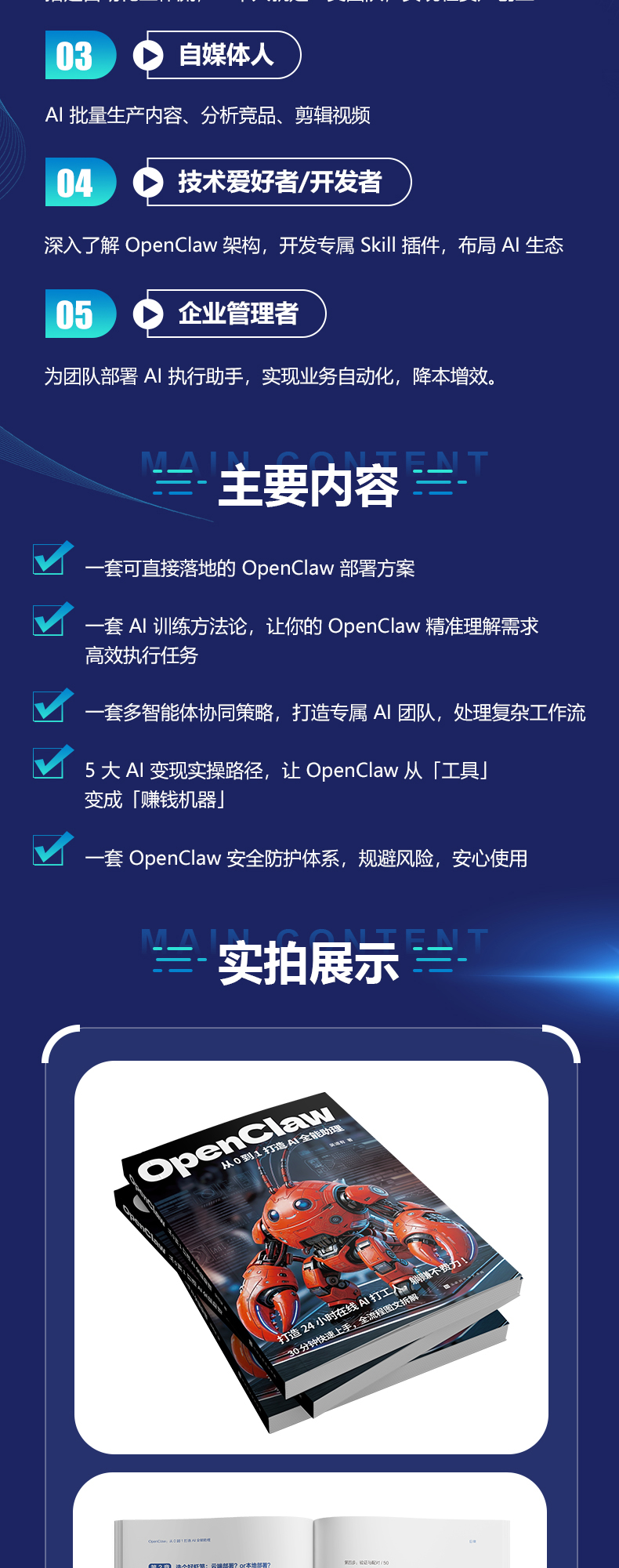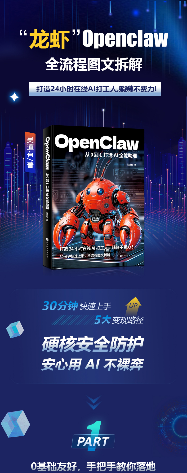 吴道有,毕业于华南理工大学产品设计专业,工业和信息化部认证高级生成式AI应用师、资深互联网产品经理,曾任职于头部互联网大厂,在“产品经理”网站上拥有1w+的粉丝,现为广州一家人工智能公司的创始人。自OpenClaw 发布以来,作为早期深度用户持续探索,更依托该平台成功指导了众多企业和个人用户的AI落地与数字化转型,积累了极其丰富的商业化实战经验。
