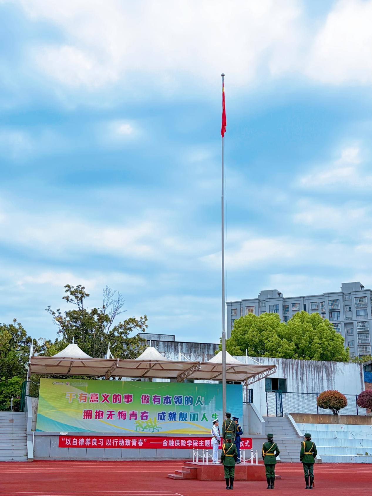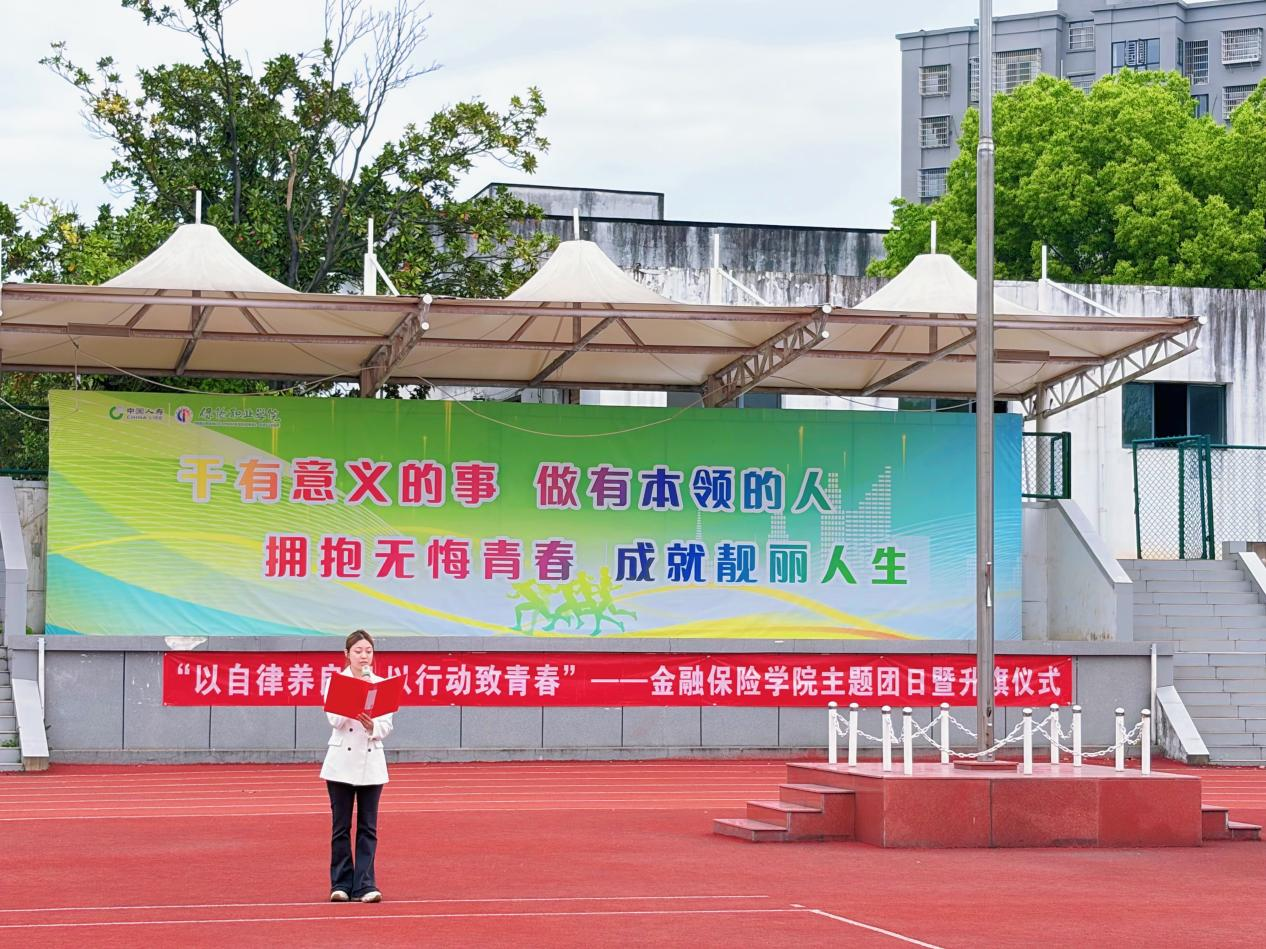 为推进“青春无悔行动计划”,引导保院学子以自律涵养优良学风、以实干践行青春担当,4月20日,金融保险学院在操场举行“以自律养良习 以行动致青春”主题团日暨升旗仪式。金融保险学院院长常伟、党总支书记赵晔、学工线老师及2024级学生参加。