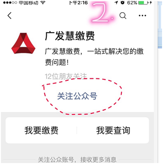 第一步:微信关注“广发慧缴费”(请仔细看清楚公众号的这几个字)。