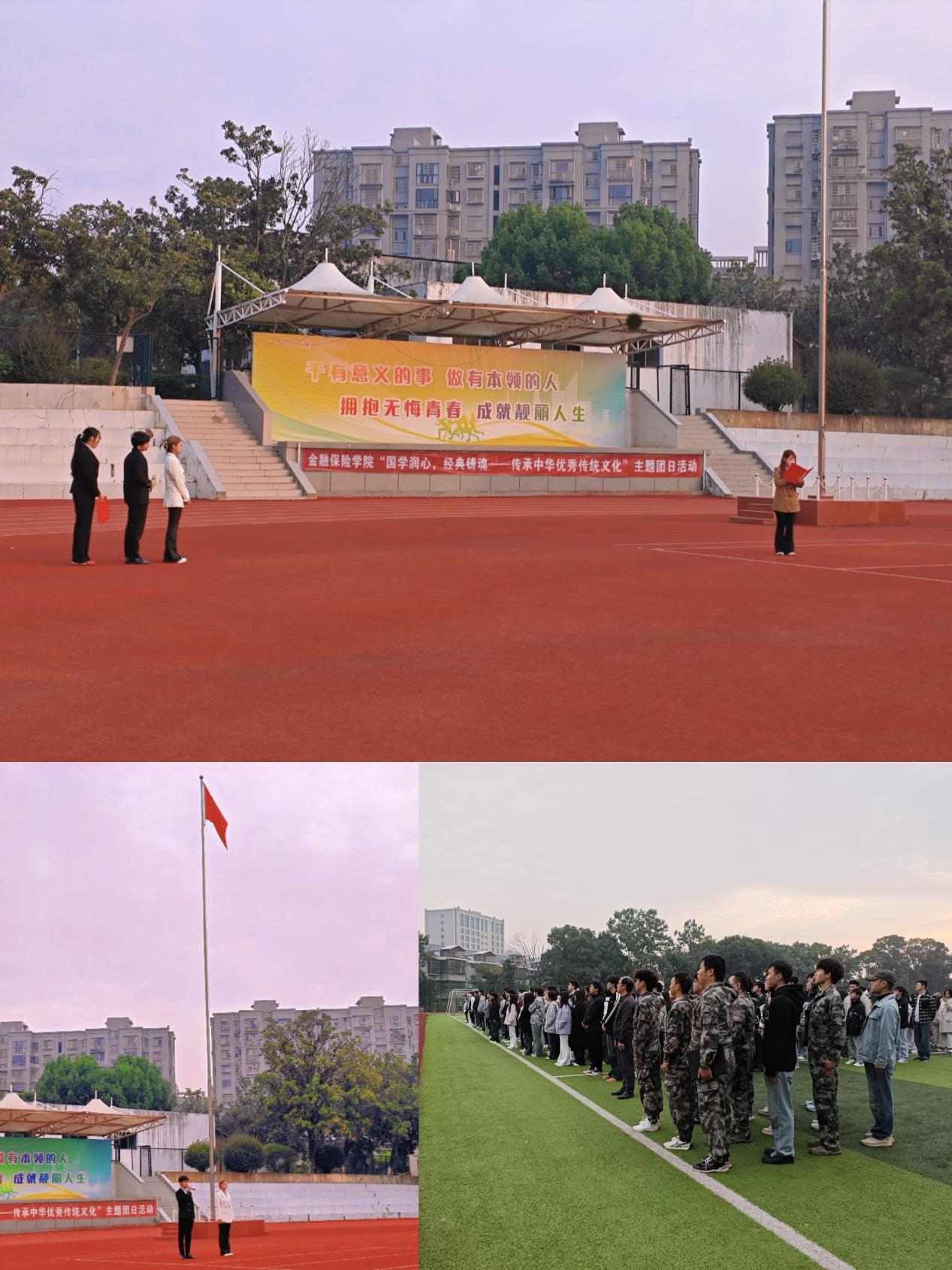 为传承中华优秀传统文化,厚植学生文化自信,10月27日,金融保险学院在操场举行“国学润心,经典铸魂——传承中华优秀传统文化”主题团日暨升旗仪式。金融保险学师生共同参加此次活动。