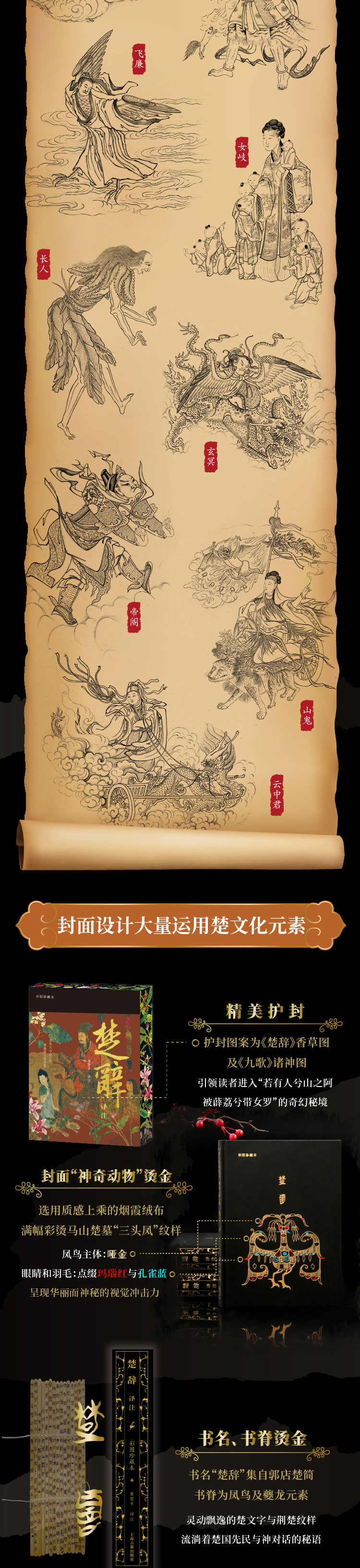 ★封面纹样为马山楚墓三头凤鸟,三色烫金;书名集自郭店楚简楚文字,美轮美奂