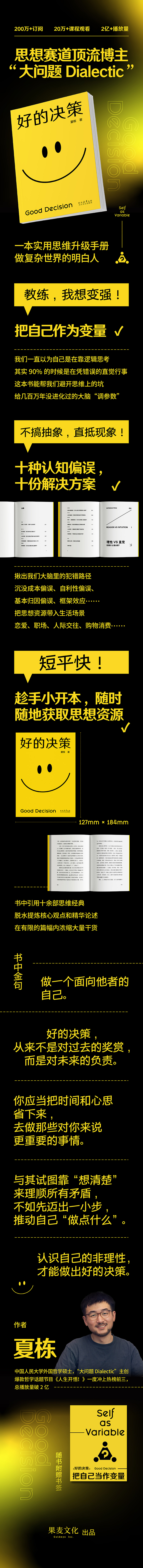 已出版《如何避免虚无》,主讲系列课程《论证与说服》《看透世界》等。